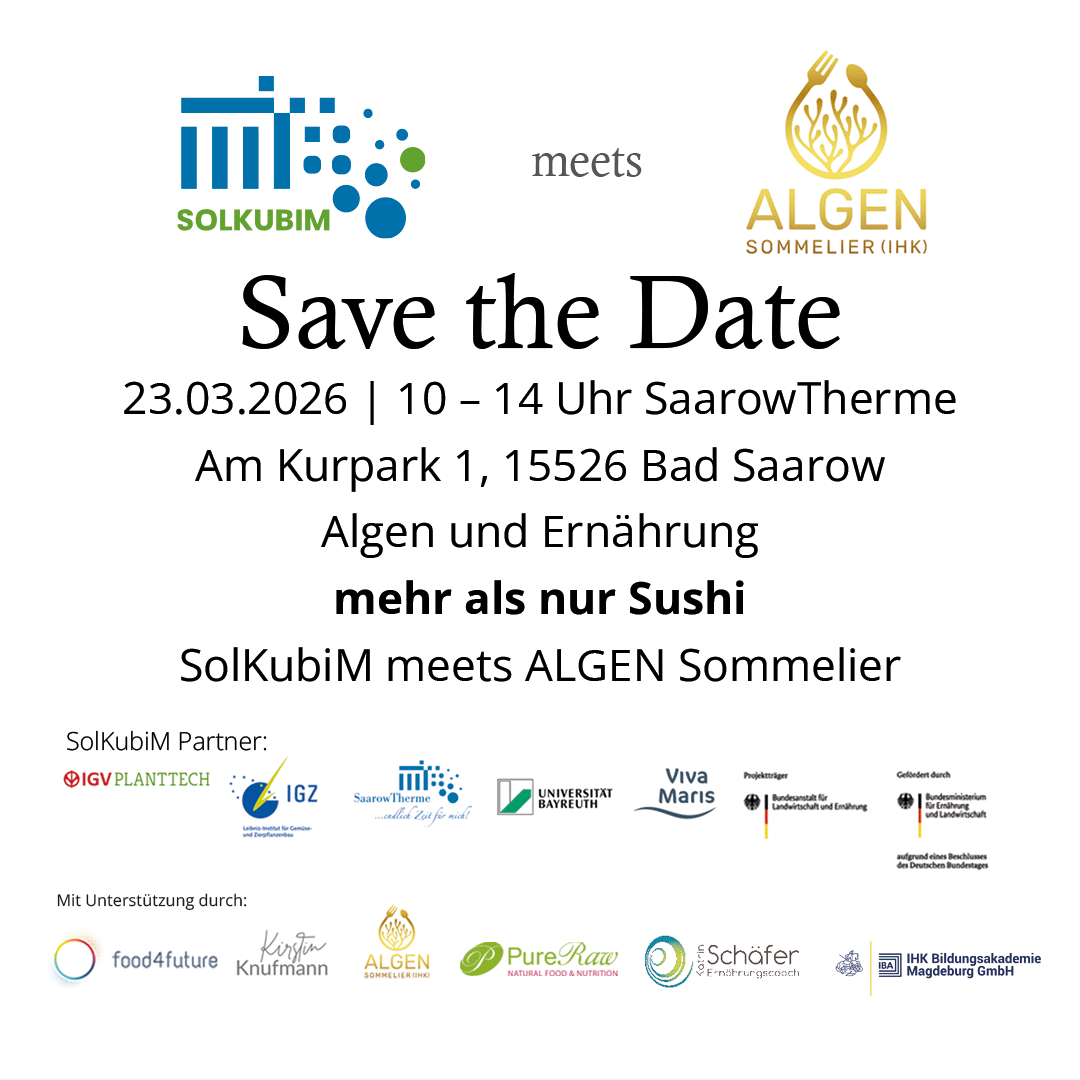 Die SolKubiM Partner stellen das Pilotprojekt der urbanen Algenkultivierung in natürlicher Sole in der Sarow Therme vor und beantworten Fragen rund um das Thema Alge.